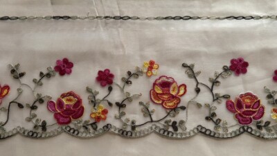 チュール部分はブラックでフラワー部分が光沢シルバーですのでコントラストが鮮やかです。
