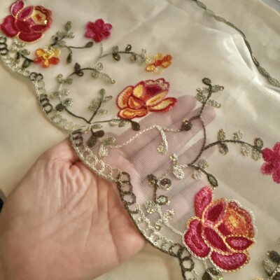 スカラップ(半円上の縁取り部分)は縫い込んでの仕上げとなります。