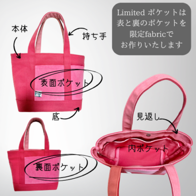 ①本体で選んだLimited生地と同じ⇒表ポケット、裏ポケット